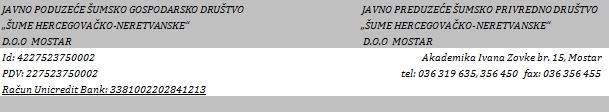 Istovremeno se zahvaljujemo na učešću i nadamo se da ćete i u buduće sudjelovati u postupcima javne nabavke J.P. “Šume Hercegovačko-neretvanske” d.o.o. Mostar, a koje se odnose na vaš djelokrug rada.